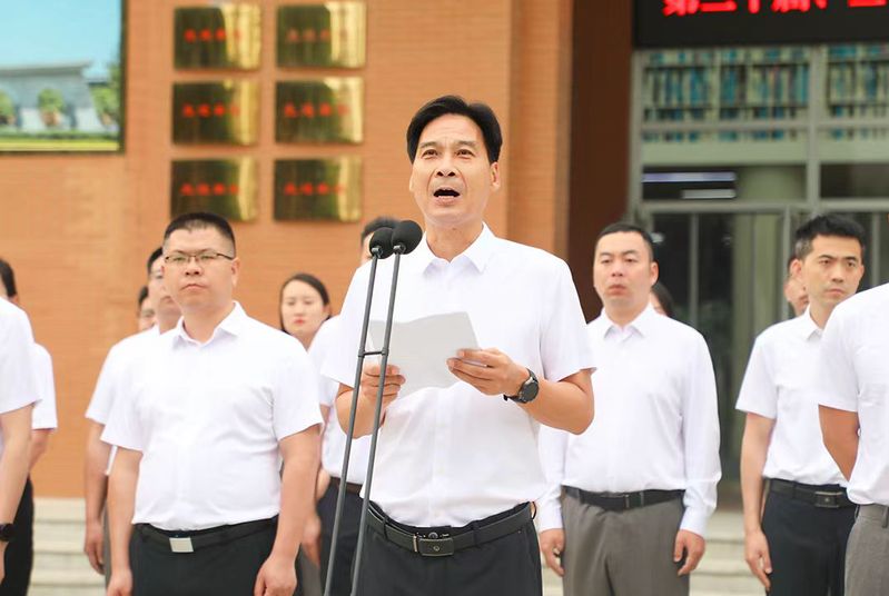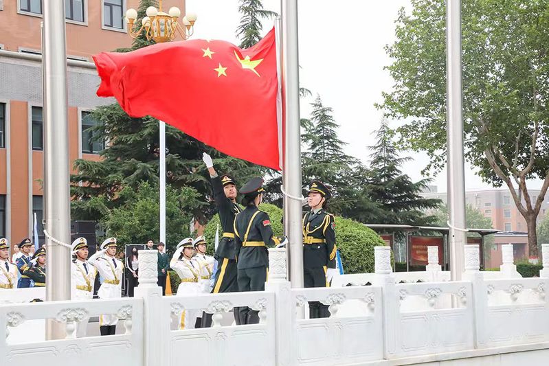 最后,校党委书记吴建军在讲话中对第二十届国旗护卫队圆满完成使命表示祝贺,对第二十一届国旗护卫队寄予厚望,望其传承优良品质,捍卫国旗尊严。校领导结合习近平总书记对青年的寄语,向同学们提出三点希望:心怀“国之大者”,让理想与时代同频共振;脚踏实地,做能吃苦的新时代好青年;勇于追梦圆梦,让理想在实践中开花结果。最后,号召广大郑商学子学习习近平总书记在河南考察时的重要讲话精神,在民族复兴征程上勇担先锋、奉献青春。