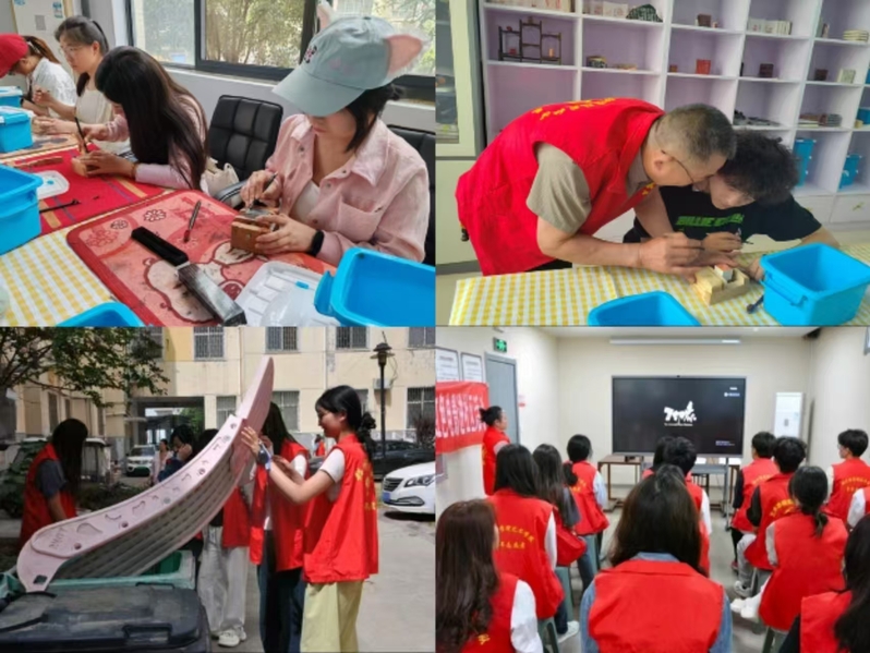 大数据学院以“石上生花:当母爱刻进时光的纹路”为主题,在福苑社区开展传统雕刻艺术实践活动。志愿者们带领居民体验石头雕刻技艺,将母爱主题与非遗文化结合,完成20余件雕刻作品。活动不仅让居民感受雕刻艺术的魅力,更通过“文化+情感”的形式传递感恩精神。后续开展的“法治非遗齐登场”活动,将印雕技艺与法治宣传结合,志愿者一边指导居民雕刻生肖印章,一边讲解高利贷、非法集资等法律知识,实现“一刀一刻传文化,一字一句讲法治”的双重效果。