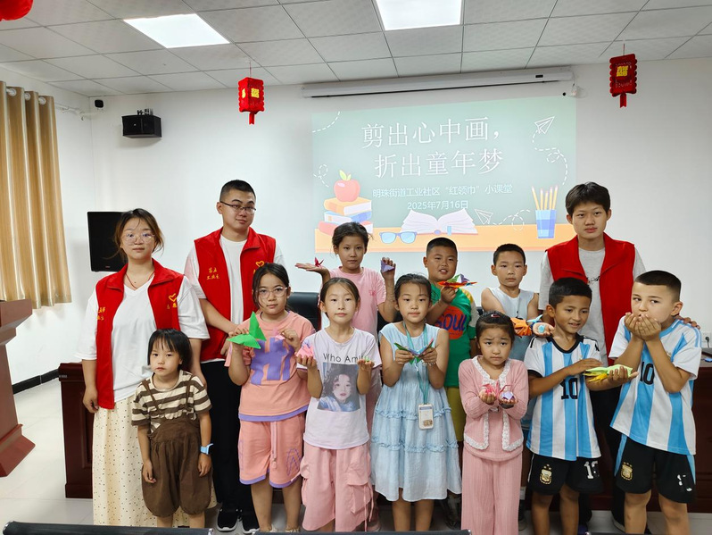 我是来自24国商1班的冷军苗,在返家乡暑假社会实践活动中,我参与了明珠街道工业社区“红领巾”小课堂活动。活动中,我和其他志愿者负责教孩子们剪纸和折纸。起初,面对活泼好动的孩子们,我有些不知所措。但很快,我调整状态,耐心讲解步骤,手把手教他们。当看到孩子们拿着作品,脸上洋溢着自豪的笑容时,我内心满是成就感。