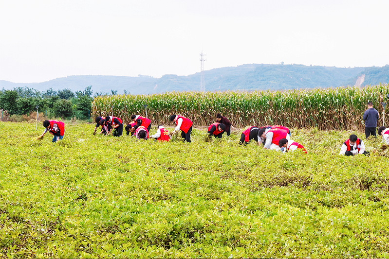在顾成健、乔龙飞、李腾腾三位老师带领下,30余名学生志愿者前往巩义市康店镇裴裕村田间地头,分为拔花生、抖泥土、装袋运输三组,在泥泞中持续奋战三个多小时,帮助多户困难家庭完成抢收,有效减少了农户经济损失。