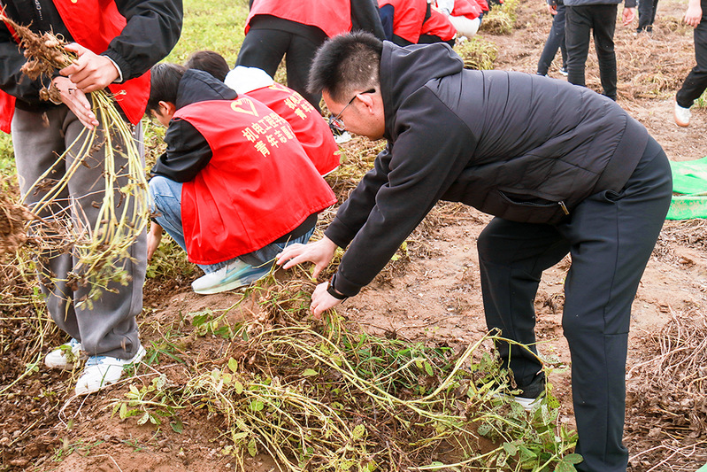 2025级电气专业学生李冠东主动承担了最累的拔花生任务,他说:“看到农户焦急的眼神,就想起了家里种地的父母。能用自己的力量帮助别人,这种成就感是课堂上学不到的。”