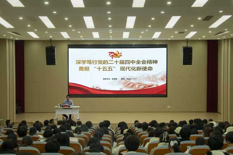 宣讲中,吴建军从“深刻理解党的二十届四中全会的内涵与坐标地位”“回望‘十四五’辉煌成就,砥砺奋进的信念与底气”“领会‘十五五’宏伟目标,明晰时代的方向与使命”“践行强国使命,书写青春华章”四个方面,介绍了党的二十届四中全会基本情况,用详实数据和丰富内容阐述了“十四五”时期我国经济实力、科技实力、综合国力跃上新台阶,在科技、教育、人才、国防建设等方面取得历史性重大成就,对“十五五”时期在基本实现社会主义现代化进程中的重要地位、“十五五”时期经济社会发展的指导思想、重大原则和主要目标,以及“十五五”时期的战略任务和重大举措等进行了全面系统、深入透彻的宣讲解读。