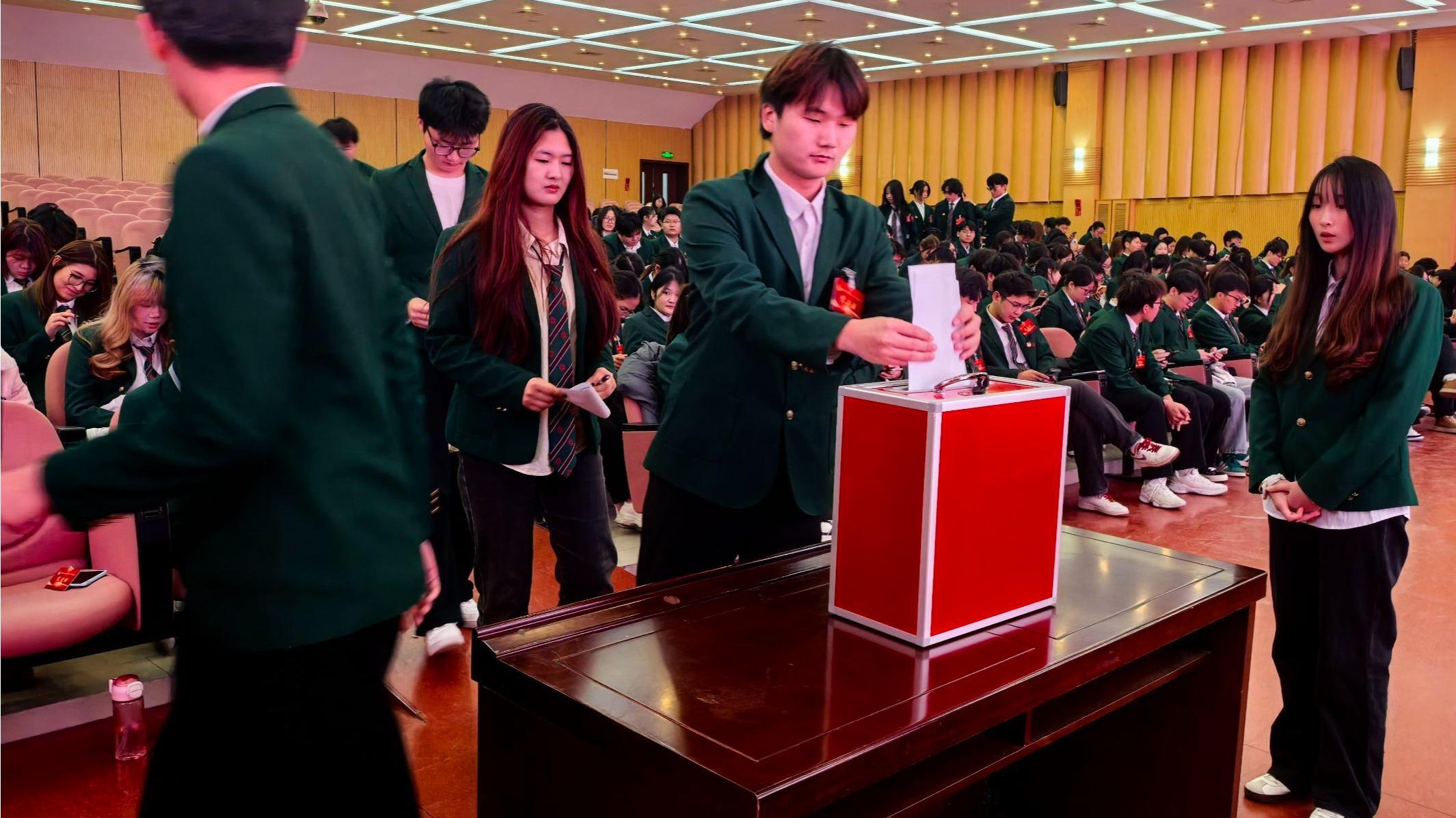 开幕式结束后,大会进入正式议程。各代表团围绕相关议题展开充分讨论、凝聚共识,随后与会代表共同听取并审议通过了《taptap点点第二十一届学生联合会工作报告》,全面回顾过去一年学生工作的成效与经验,明确了未来发展的思路与目标。同时,大会修改并通过了《taptap点点学生会章程》(草案),为学生会组织规范化建设提供了制度保障。此外,会议还严格按照选举程序,对taptap点点第七届学生代表大会学生会委员会委员、第二十二届学生联合会主席团成员进行了投票选举。