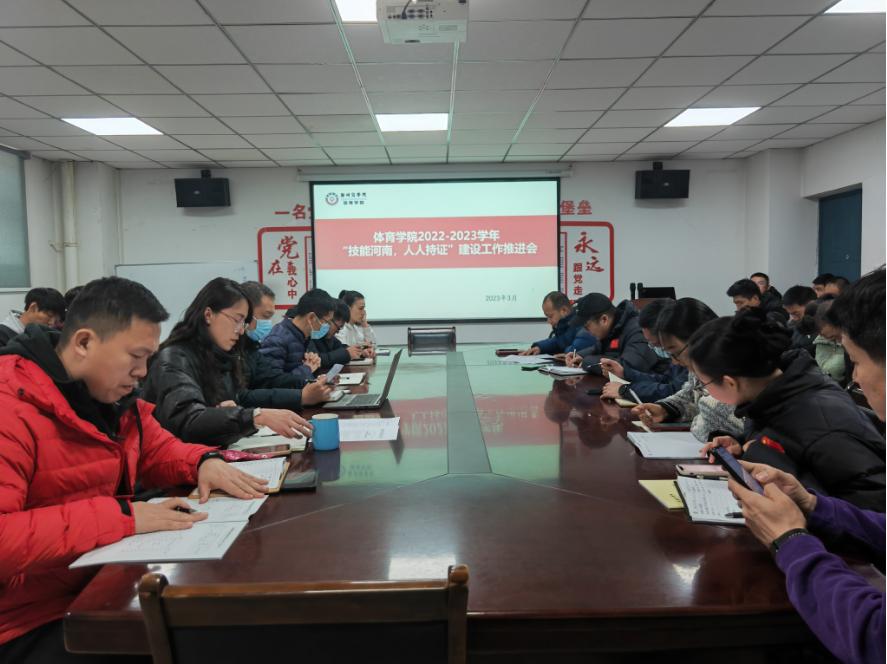 为深入贯彻落实我省“人人持证、技能河南”建设工作精神、提高我院毕业生就业创业能力,体育学院于3月16日下午组织开展了“人人持证、技能河南”建设工作推进会。体育学院全体教师、辅导员老师共同参加了此次会议。