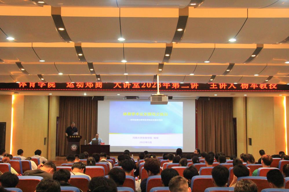 5月11日下午,河南大学杨军教授受邀莅校出席“运动郑商”大讲堂2023年第二讲,在图书馆国际报告厅为体育学院师生进行了一场题为《学术论文写作之我见》的专题报告。报告会由体育学院院长张元通主持。