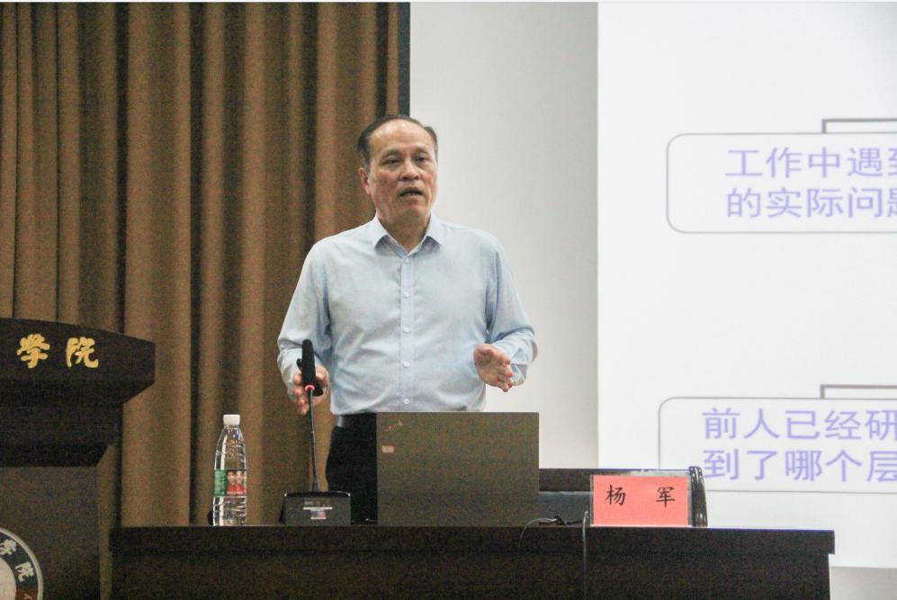 杨军教授首先对我院专业建设和教学改革成果给予充分肯定,随后,他分享了如何写好本科生毕业论文的经验与技巧。并从什么是学术论文、怎么写学术论文、高质量学术论文的标准三个方面进行了系统而深入的讲解。杨军教授结合自己多年的教学工作经验,通过大量案例,为在场师生详细解读了学术论文的特点、形式(格式)规范,阐述了学术论文的规律性、创造性和科学性,强调创新是学术论文的核心,同时要遵守道德规范、创作规范、形式规范、引注规范、文字规范。通过杨军教授通俗易懂的讲解,在场师生了解到,要写好一篇论文,必须遵守学术道德、打好理论基础、提高学术水平、关注学术热点,追踪学术前沿、坚持学术创新,加强写作规范。