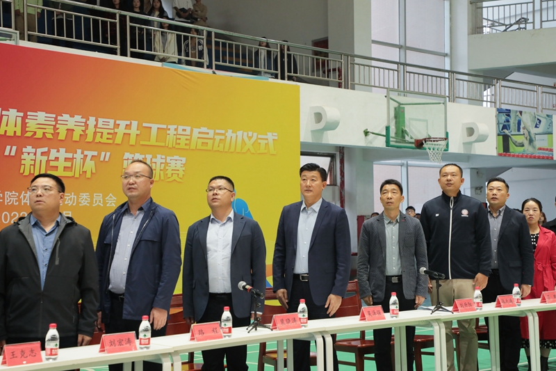首先,全体肃立,奏唱国歌。在介绍完出席领导之后,由校长助理刘升阳致开幕词,刘助理首先代表校领导对2023级新生的到来表示热烈的欢迎,对此次活动的顺利进行表示祝贺,向筹备此次活动的师生表示感谢。刘助理在开幕词中讲到,“新生杯”篮球赛是点点官网2023-2024学年“全民健身嘉年华”体育活动计划暨“华光”体育活动计划的首项赛事,是贯彻落实全国、全省教育大会精神,牢固树立健康第一的教育理念,切实提升学生体质健康水平,推进点点官网身体素养提升工程,打造“无运动 不郑商”的校园体育文化氛围的重要环节,同时也通过篮球比赛帮助新生更快、更好地融入郑商大家庭,希望同学们在过程中享受比赛,把比赛中展现的顽强拼搏、奋发向上的进取精神运用到日常生活和学习中。最后刘助理预祝比赛圆满成功,各参赛队取得优异成绩。