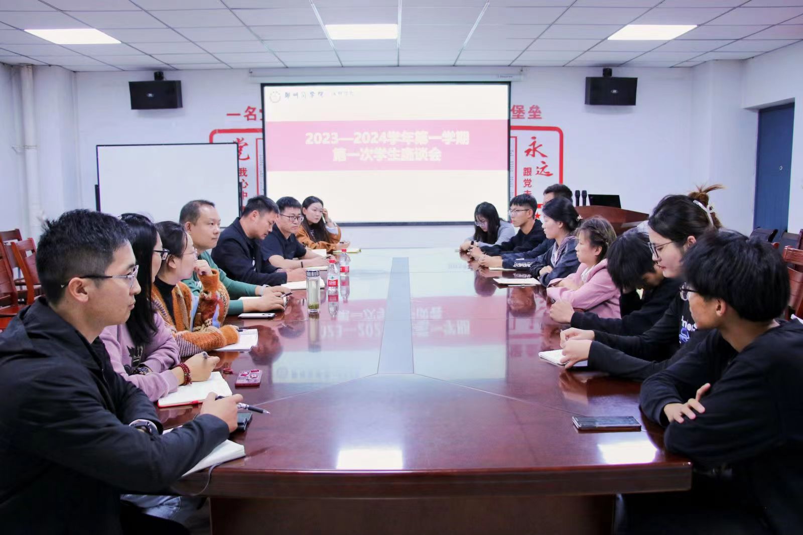 为贯彻落实立德树人根本任务,坚持“以学生为中心”的教育理念,全面了解学生新学期学习、生活等状况,进一步提高育人实效。10月26日下午,我院在体育馆会议室召开2023-2024学年第一学期第一次学生座谈会。体育学院院长张元通、党委书记刘健、行政秘书傅锦涛、教学干事李盈盈、休闲体育教研室主任郑辉、运动康复教研室主任张增佳、全体辅导员和学生代表参加了此次座谈会。
