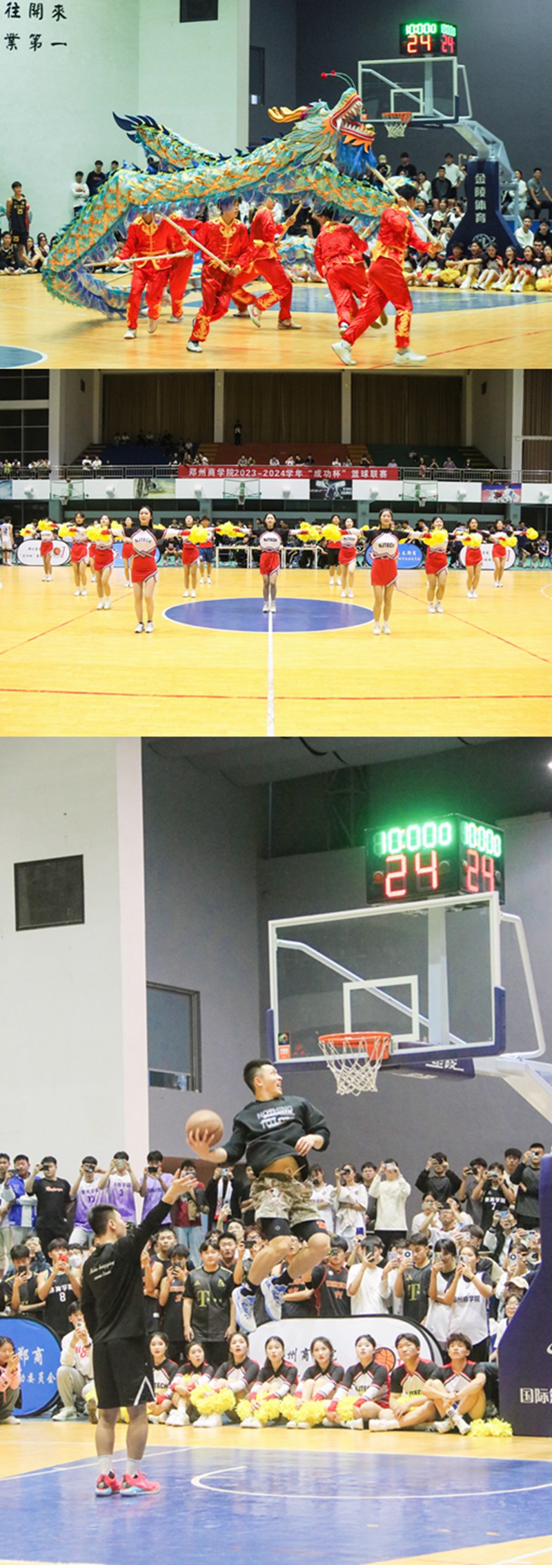 开幕式结束,点点官网龙狮协会和啦啦操队带来精彩的暖场表演,随后由CBA扣篮大赛冠军、CUBA扣篮大赛冠军、中国顶级扣将杨浩,东北三省扣篮王、野球帝签约扣将高荣,前CBA北京首钢男篮青年队队员、现体育学院教师师猛及2022级会计学专业学生艾则麦提江为现场观众带来精彩的扣篮表演大赛,随着一次次精彩的扣篮,现场爆发出山呼海啸般的喝彩与掌声。