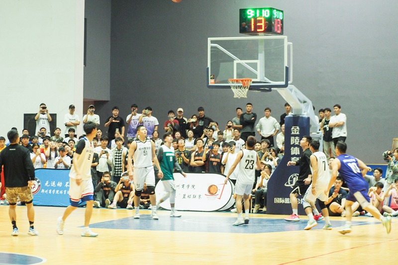 揭幕赛由信工学院对阵管理学院,一声哨响,比赛开始,双方随即展开激烈的拼抢,快速的攻防转换迅速点燃了现场的气氛,队员们在场上顽强的拼搏,啦啦队的呐喊声响彻整个赛场,处处洋溢着郑商学子的蓬勃朝气。