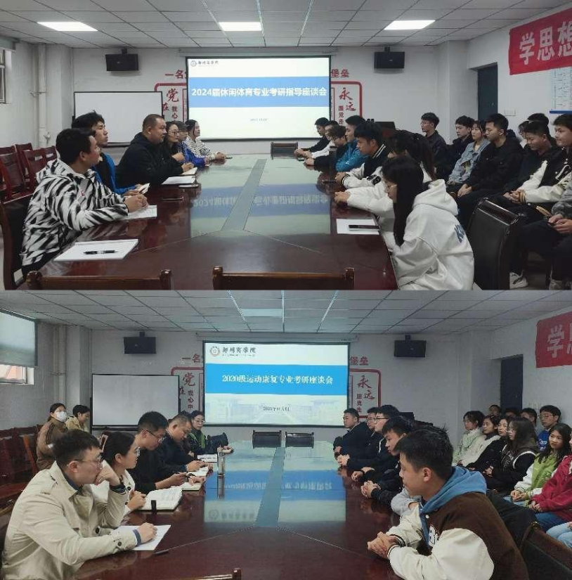 体育学院于11月7日—8日分专业召开考研师生座谈会。会上分专业对考研形势进行分析,了解学生专业报考院校、复习情况,并针对学生在学习过程中遇到的问题与困难逐一进行解答。近年来,体育学院持续深化教学综合改革,扎实开展分层分类教学,将考研率、专业对口就业率作为检验专业建设成效的重要指标,取得了积极成效。