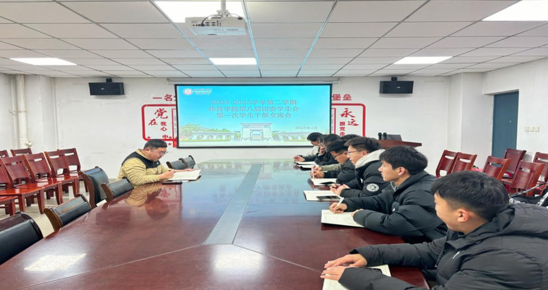 为加强体育学院团委学生干部队伍建设,提升学生干部工作能力和综合素质,明确新学期工作重点,体育学院第八届团委学生会第一次学生干部交流会于2月20日在体育馆一楼会议室顺利召开,学院团委书记丁震霆和学院各部门学生干部出席会议。