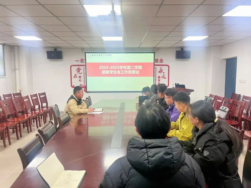 为了高效启动新学期各项工作,促进学生干部从假期状态平稳过渡到学习与工作模式,全面提升个人综合素质,确保新学期学生工作的顺利开展。2月16日上午10点,我院2024-2025学年第二学期团委学生会工作部署会在体育馆一楼会议室顺利召开。会议由团委书记丁震霆主持,全体主席团成员参加。会议聚焦新学期团学工作方向,系统总结既往经验,部署重点工作任务,为提升服务效能、凝聚青年力量奠定坚实基础。