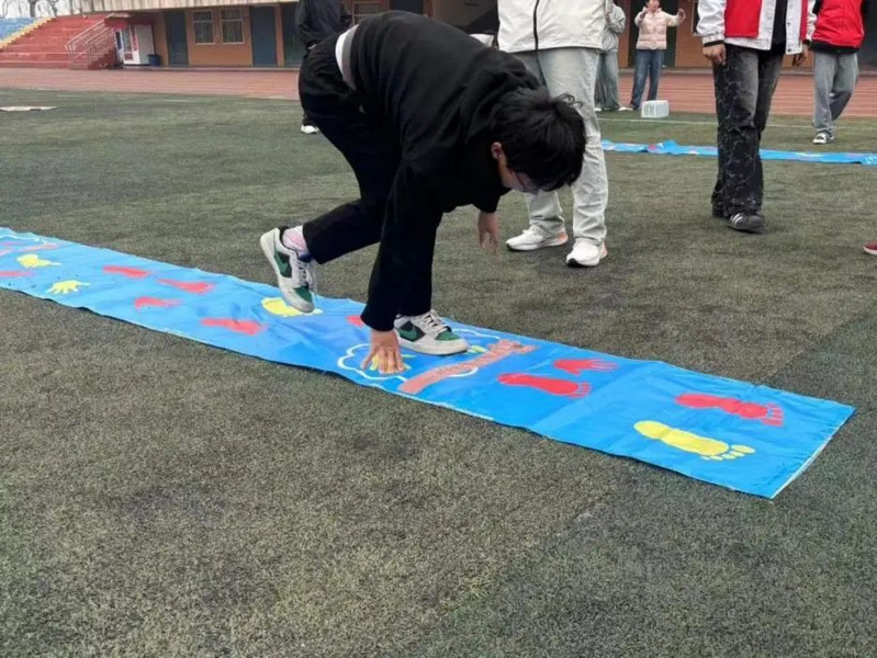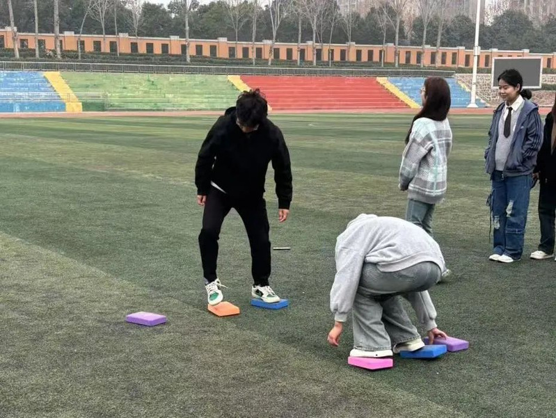 当日,校园里一片欢声笑语,一系列趣味运动项目热烈地展开了。在“众搭高塔”项目中,同学们齐心合力,稳稳地把一块块积木堆叠起来,筑起了友谊的高塔;在“同手同脚”环节,大家动作敏捷、反应迅速,按照标识缓缓前行;而“原地30s”项目则考验着每个人的平衡感,同学们屏息凝神,努力在有限时间内展现出最佳状态。此外,“珠行万里”和“巨人脚步”等活动也是各具特色,同学们在欢声笑语里团结合作,不仅拉近了彼此的距离,还在无形中增强了团队的凝聚力。