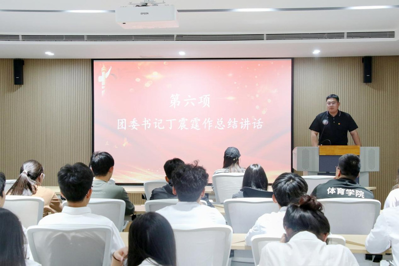 此次仪式在庄严的团歌声中拉开帷幕,全体师生起立奏唱团歌,展现了团员青年的青春活力和对共青团的热爱。仪式上,王丽敏老师宣读了结业通知,并对学员们在团校培训中取得的成绩给予了高度评价。随后,仝燕平老师为新团员代表颁发了结业证书,丁震霆书记为46名新团员佩戴了团徽,象征着他们正式成为共青团的一员。在入团宣誓环节,新团员们在王莎莎同学的带领下,面向团旗庄严宣誓,表达了他们对共青团的忠诚和为共产主义事业奋斗的决心。最后,团委书记丁震霆老师作总结讲话。他首先对本期团校的成功举办表示祝贺,并对全体学员提出了殷切希望。他强调,团校的结业不是终点,而是新征程的起点,希望学员们将团校所学融入到日常生活中,争做有理想、敢担当、能吃苦、肯奋斗的新时代体育青年。