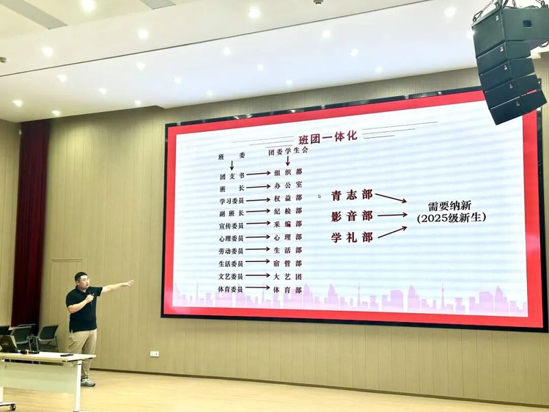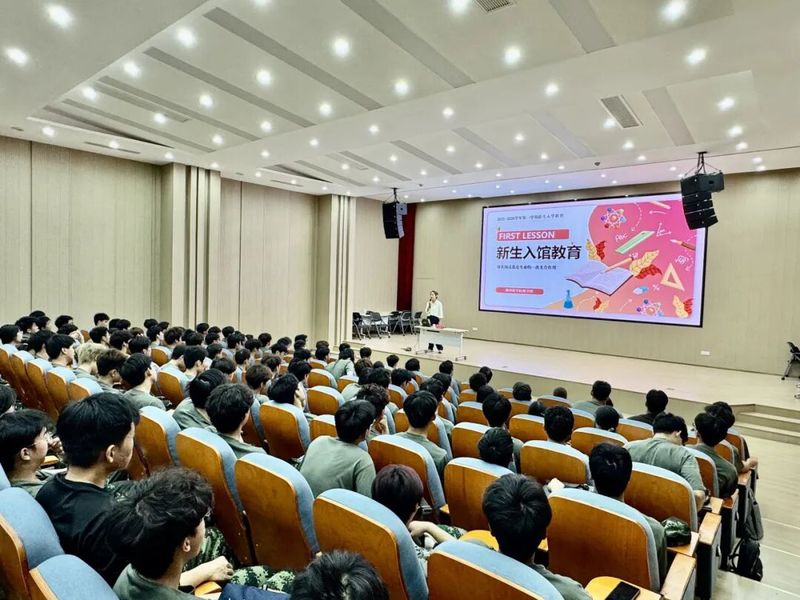 18日上午,主讲人朱少飞科长为新生开展图书馆入馆教育,详细介绍了馆藏资源、借阅流程及各类服务设施的使用方法,帮助同学们更好地利用图书馆进行学习科研。随后,丁震霆书记为新生介绍团委学生会部门职能,鼓励大家积极参与学生工作,在实践中锻炼自我、服务同学。