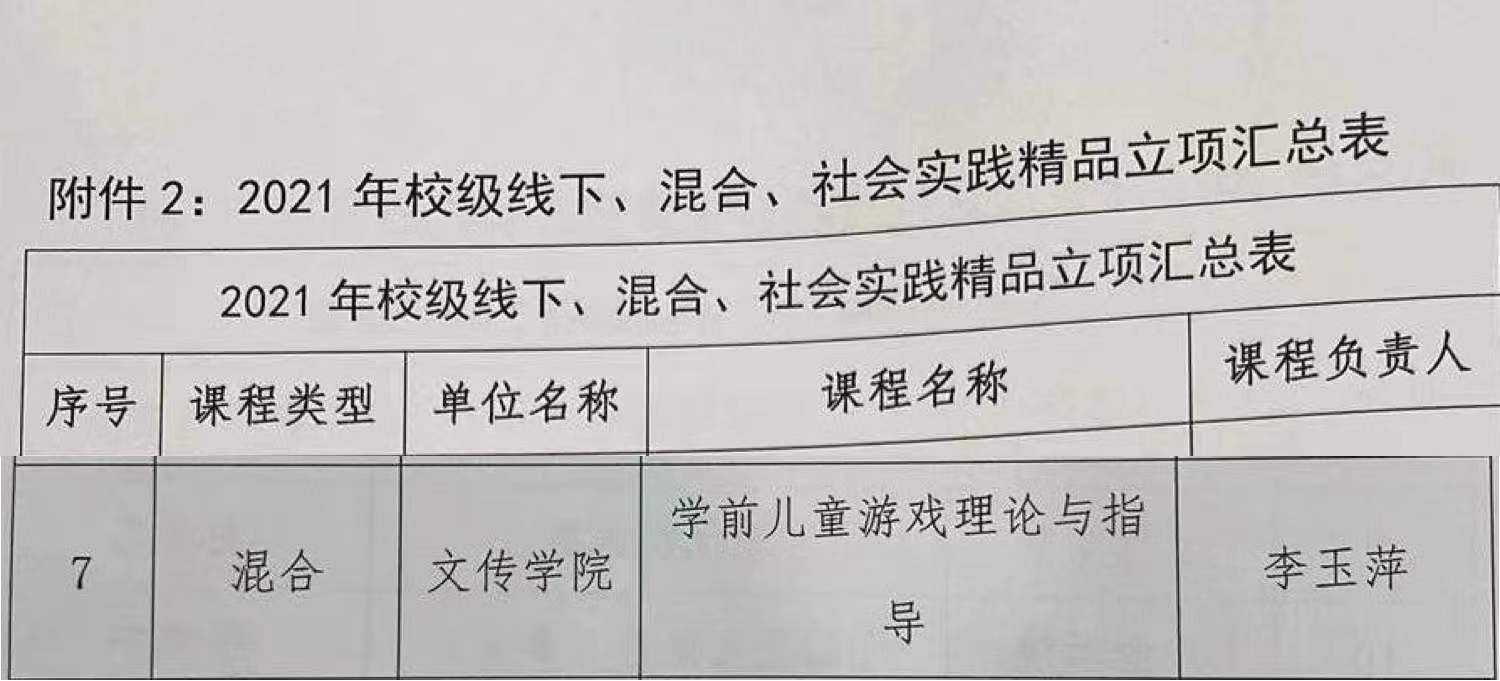此次成功立项,我院是切实推进课程思政教育教学工作的成功体现,有助于推动我院线上线下融合式教学模式改革,提高课程建设水平和课堂教学质量,提升人才培养质量,也是《学前教育学》《学前儿童游戏理论与指导》教学团队按照学校及学院要求努力工作的成果。