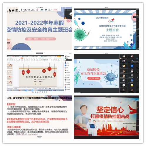 为贯彻落实学校在《关于印发霍金花副省长在省疫情防控指挥部教育专班视频调度会上讲话要点的通知》和《河南省教育厅办公室转发关于启动重大气象灾害(暴雪、道路结冰)IV级应急响应的通知》的部署,文传学院于1月23日在全院召开寒假期间第二次主题班会。
