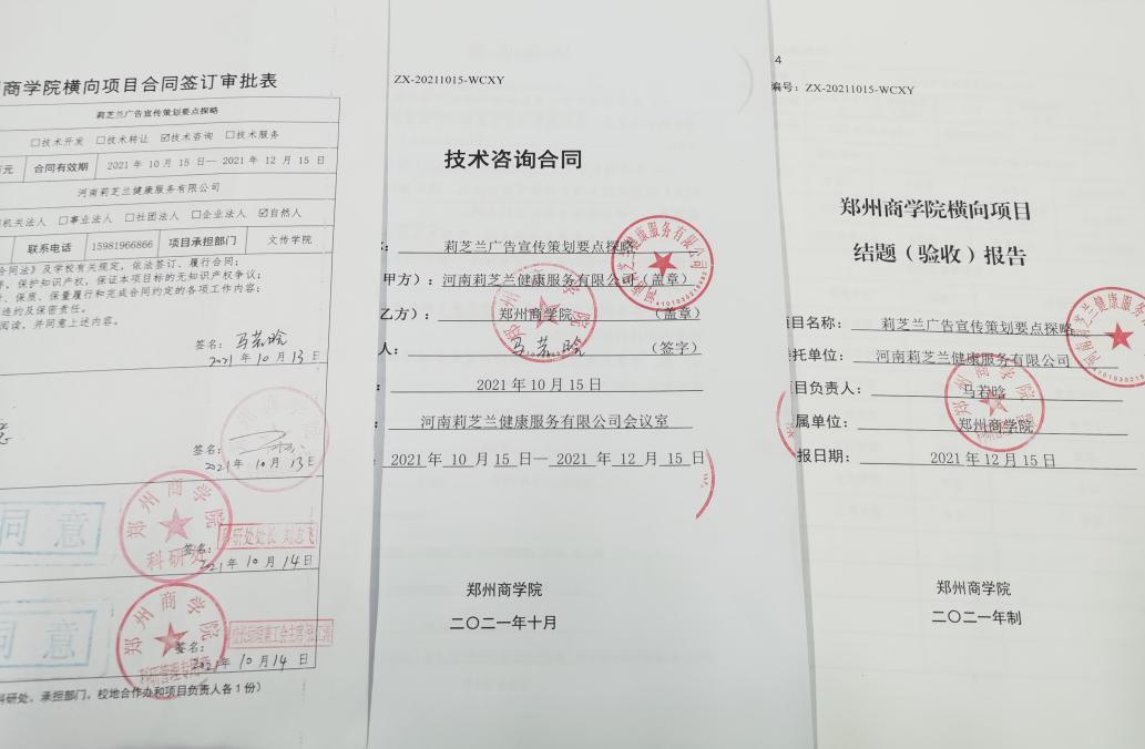 近日,我院马若晗老师与郑州莉芝兰健康服务有限公司合作的横向课题《广告宣传策划要点探略》项目顺利验收结项,该项目为我院文学教研室承接的关于广告宣传策划的横向科研项目。