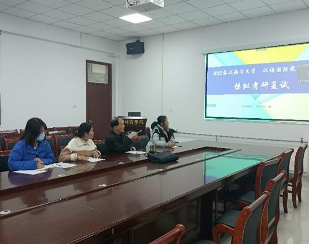 文传学院领导高度重视考研复试工作,安排考研专项负责人青年党员教师马若晗统一组织系列考研复试模拟面试,在学院安排下,各教研室邀请了各专业校外专家、校内硕士生导师及硕士青年教师,以线上线下的多种方式组织模拟面试,复试指导会力图还原复试现场,让同学们提前感知复试场景,从而更加从容地应对复试,力求逐一指导,精准发力,共助过线学子成功上岸。
