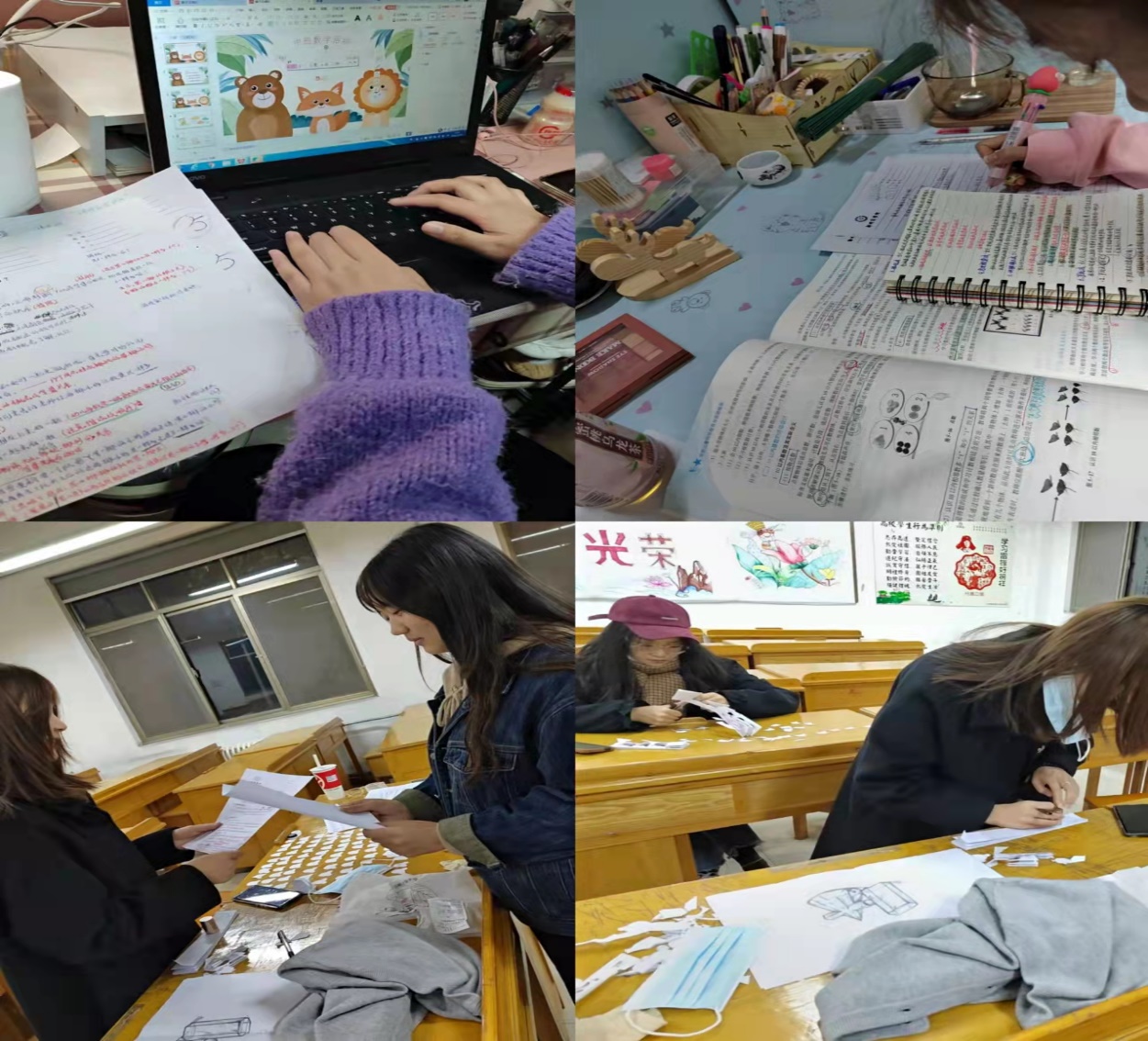 学生在进行试讲前的准备(制作教学课件、设计教案、模拟试讲、制作教具)