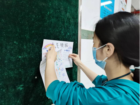 4月17号开始学生第五党支部学生党员对各宿舍楼进行了天气预报提示张贴活动。活动开始,学生党员对西区所有宿舍楼进行合理分工,每天晚上九点各自带着自己画好的天气预报温馨提示图在划分好的宿舍楼进行张贴,每日更新,用实际行动为师生带来温情守护,筑牢身体安全防线。