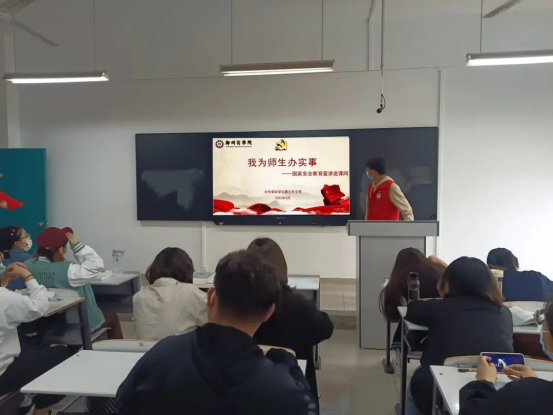 为进一步增强广大师生国家安全意识,推动国家安全教育深入开展,在第七个全民国家安全教育日到来之际,文传学院学生第三党支部于4月12日组织开展“我为师生办实事——国家安全教育宣讲进课间”实践活动。活动当天,我院学生第三党支部学生党员利用课间休息时间,前往学生宿舍、教室宣讲国家安全教育知识。在活动过程中,党员同志们严格按照疫情防控要求,全程佩戴口罩,并做好相关登记工作。一位同学表示:“以前总觉得国家安全很神秘,离我们很远,但通过你们的讲解,我才真正认识到国家安全就在身边”。此次宣讲进一步增强了我院学生国家安全防范意识,为实现全院自觉维护国家安全奠定了坚实基础。