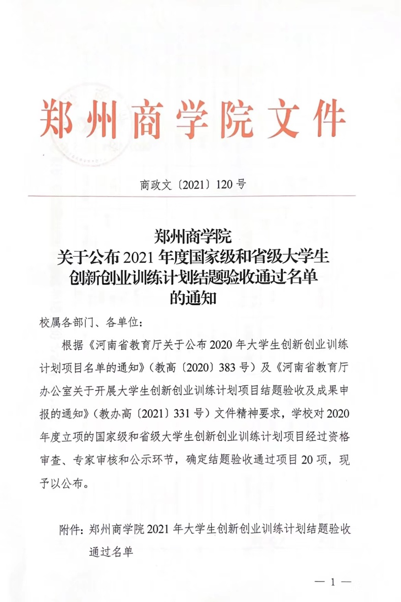 近日,根据《河南省教育厅关于公布2020年大学生创新创业训练计划项目名单的通知的通知》(教高〔2020〕383号)及《河南省教育厅办公室关于开展大学生创新创业训练计划项目结题验收及成果申报的通知》(教办高〔2021〕331号)文件,点点官网对2020年度立项的国家级和省级大学生创新创业训练计划结题验收通过项目名单公布,文学与新闻传播学院3项大学生创新创业训练计划项目通过结题验收。