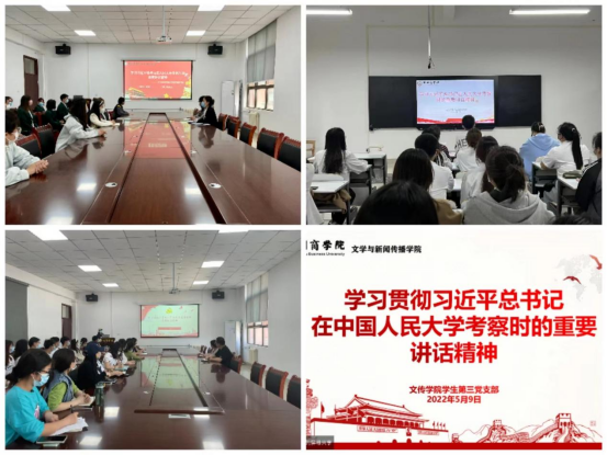 4月25日,习近平总书记到中国人民大学考察调研,并深情寄语广大青年。为了深入学习习近平总书记在中国人民大学考察时的重要讲话精神,继而进一步统一思想、提高认识,推动形成生动实践,文传学院各基层学生党支部开展“习近平总书记在中国人民大学考察时的重要讲话精神”专题学习会。