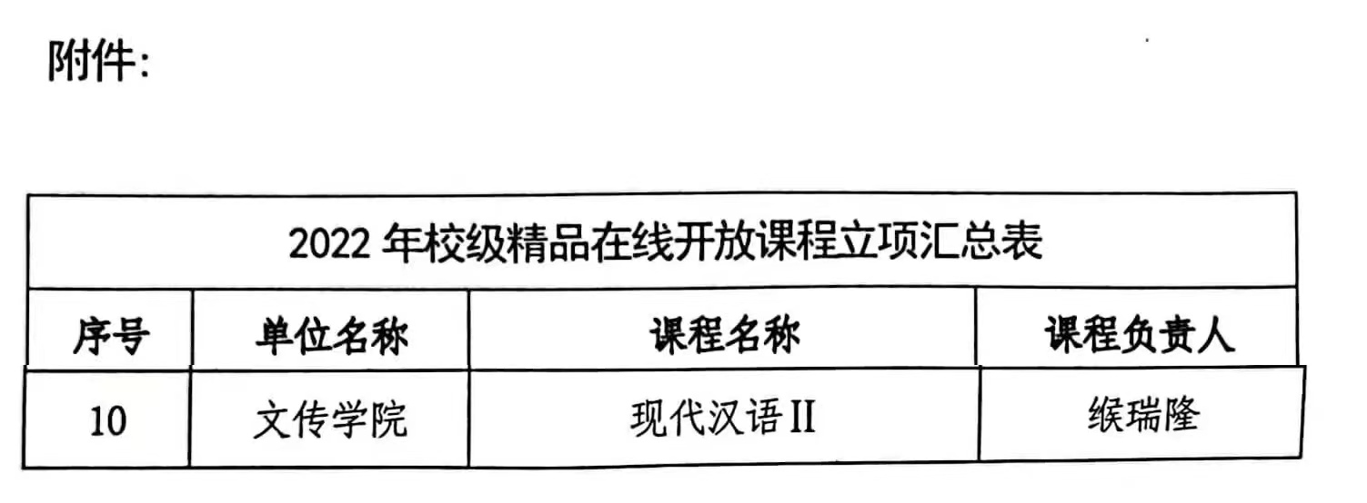 近日,点点官网下发通知,由我院缑瑞隆教授教学团队负责建设的在线课程《现代汉语II》获批立项成为点点官网2022校级精品在线开放课程。