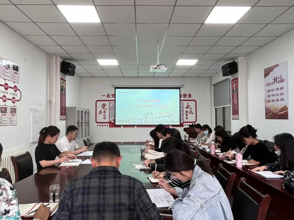 为确保学期初各项工作任务的有效落实,8月30日下午,文传学院在自力楼会议室召开本学期第二周学生安全管理工作会议,文传学院党委书记贾蓓、团委书记王凯及全体辅导员参加会议。