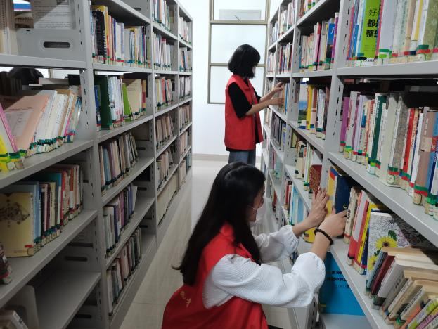参加志愿活动的支部成员先虚心向图书管理老师学习了解图书整理和新书入库方法,接着在小组长的带领下,志愿者开始着手整理图书,他们认真的将书籍按照编号进行分类整理,仔细查阅书刊序号将相应图书返回到书架上。经过志愿者同志们一个小时的整理和归纳,阅览室的图书序列一目了然,为同学们借阅图书提供了便利,也为大家营造了一个良好,整洁的阅读环境。