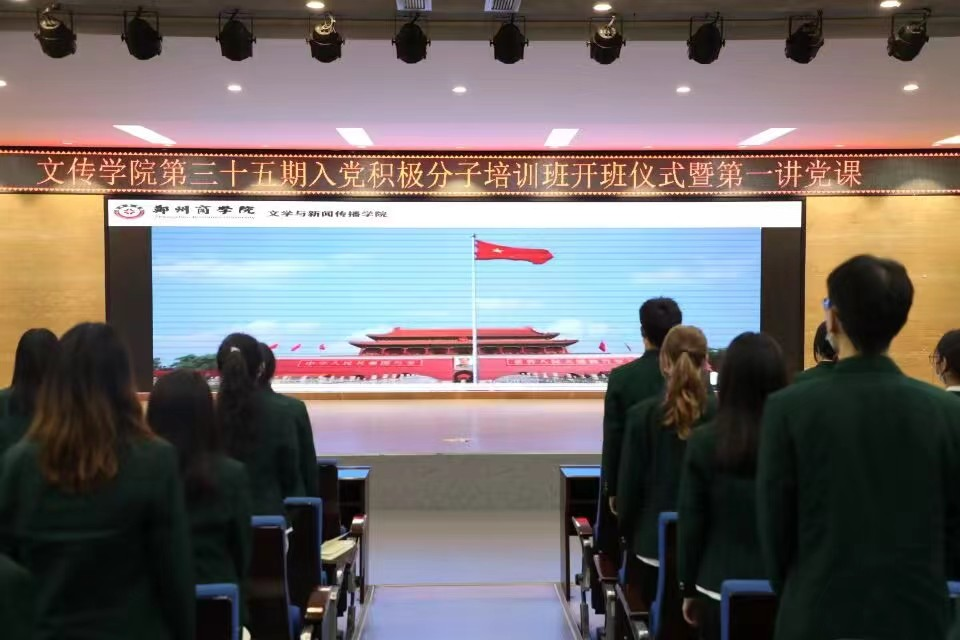 为坚持标准,提高质量,把好党员发展“入口关”,文传学院于10月14日在自力楼三楼报告厅举行“第三十五期积极分子培训班开班仪式暨党课第一讲”。文传学院党委书记贾蓓、团委书记王凯、各学生党支部书记及第三十五期入党积极分子共同参加开班仪式,会议由潘亚萍老师主持,此次会议严格遵守疫情防控原则,全体师生佩戴口罩,隔一坐一。