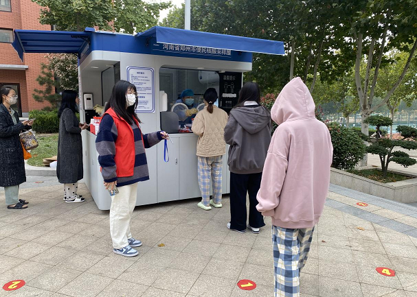 在核酸检测现场,支部成员维持核酸现场秩序,组织同学们有序排队扫码,充分展现出新时代党员甘于奉献、不怕辛苦的风貌,烘托了良好的校园氛围。