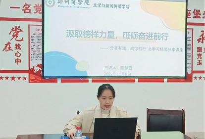 学习是一种思想上的劳动。本次学习经验分享讲座的顺利举行,以学姐的奋斗故事为切入点,给同学们分享了丰富的学习经验,有利于同学们树立正确的学习观、劳动价值观。通过聆听学姐的奋斗故事,同学们树立了良好的榜样,对未来学习生活增添了信心。同时,本次活动也有助于增强我院育人大课的成效,推进我院的学风建设发展。