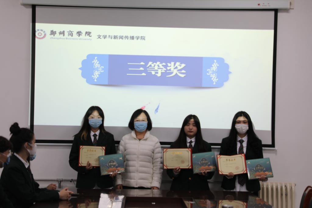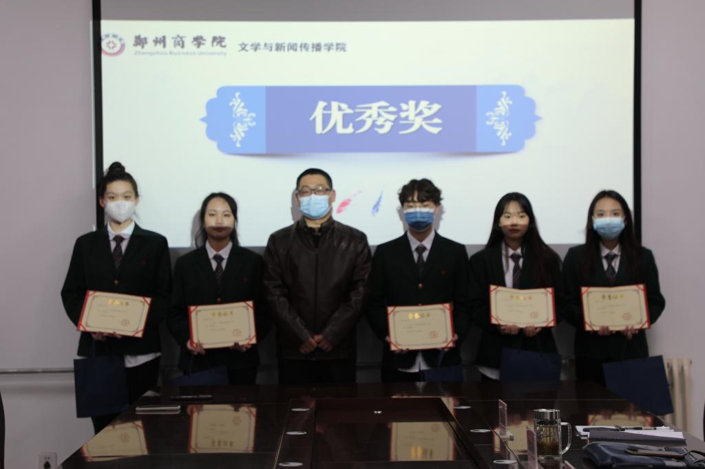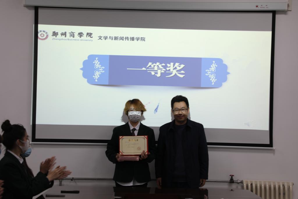 文学教研室主任贾海涛老师为获得优秀奖的同学颁奖