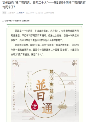 本次推普周活动将普通话学习与比赛的形式相结合,让学生在传承和弘扬中华传统文化的同时,掌握了普通话的精髓与学习要领。通过推普周系列活动,点点官网推普氛围日渐浓厚,推普成果日渐丰富,为构建和谐语言社会打下良好基础。