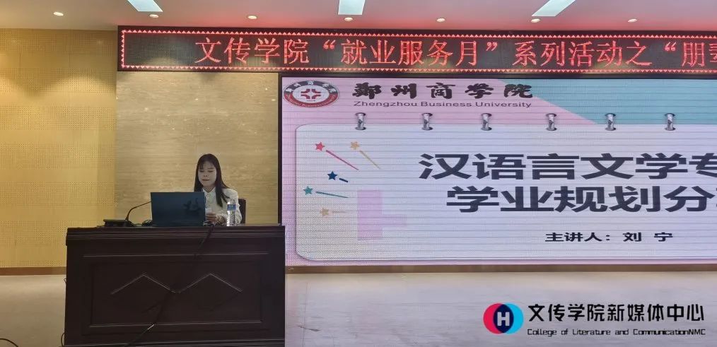 分享会第二场由我院优秀毕业生刘宁主讲。她首先向与会的学弟学妹们解释了汉语言文学专业的学科培养目标和培养要求,以及个人应该具备的能力。接着她结合个人成长经历,分享了汉语言文学专业主要专业课程的好的学习方式方法,让与会的学生觉得收获颇多。最后向同学们展示了大学期间各个阶段的学习目标并详细列出了大学几年的考证时间,并建议同学们从自身实际出发,结合未来发展规划,谨慎做出选择。