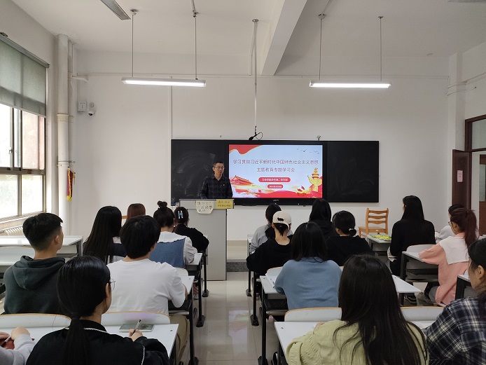 为了深入学习宣传贯彻党的二十大精神,全面落实党中央主题教育部署和习近平总书记重要讲话精神。根据学校学习贯彻习近平新时代中国特色社会主义思想主题教育理论学习工作安排,文传学院学生第二党支部于5月8日在自力楼205教室组织党员开展学习贯彻习近平新时代中国特色社会主义思想主题教育专题学习活动。本次学习以“深入学习领会习近平新时代中国特色社会主义思想,深刻领悟‘两个确立’的决定性意义,增强‘四个意识’,坚定‘四个自信’,做到‘两个维护’,凝心铸魂筑牢根本,锤炼品格强化忠诚”为主题展开。活动由学生第二党支部书记牛道恒老师主持,全体学生党员参与。