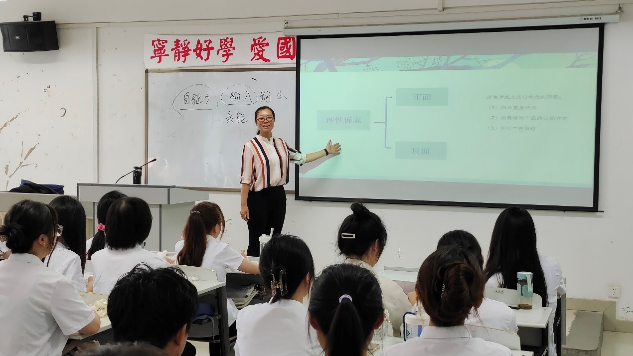 本学期第17周的教学亮点是新传教研室专职教师翟晓瑞老师,她讲授的课程是《广告文案写作》,在讲述广告口号的五种类内容类型和四种结构类型时,她展示了广告口号的八种表现形式,并以大广赛命题联通沃派作为命题让学生当堂练习。翟老师让同学们按学号逐个起来读出自己的广告口号,并逐一点评。对表现优秀的同学热烈的表扬鼓励,对一些尚需要进一步修改的同学先肯定其优秀的方面,比如态度,思路,修辞等,然后提出修改建议供同学们参考,并且最后提问到:" 大家听完这64个广告口号,你认为哪一个最好,最能够传达联通沃派的品牌的价值和文化?"同学们纷纷站起来踊跃发言,说出自己认为最好, 最优秀的广告口号。然后翟老师进一步让同学们归纳这些能够胜出打动消费者和参赛评委的广告口号的共同特征。同学们恍然大悟,瞬间明白了在学院奖大广赛众多参赛作品中,要想打动评委,创新是第一策略。课堂气氛热烈,笑声不断。下课后,有不少同学拿出自己准备的大广赛其他命题的参赛作品想翟老师请教,请翟老师点评,给出修改意见。