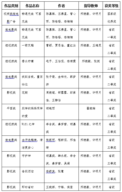 “大广赛”获奖名单