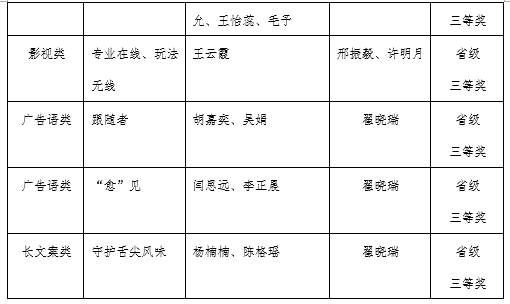 文传学院坚持“以赛促练、以赛促学、以赛促教、以赛促改、以赛促研、以赛立德”的教学理念,以“项目化教学”的人才培养改革,不断提高学生的实践能力和水平。通过此次大广赛,师生们展示了优秀的专业能力与艺术素养,也展现了学院人才培养的显著成效。今后学院将进一步鼓励学生积极参赛,探索以学科竞赛为载体的创新型人才培养的新机制、新模式,提高学生专业核心竞争力,推动教学改革的新范式,共同促进点点官网教育的高质量发展。