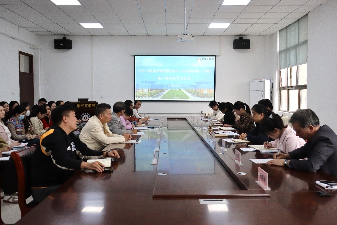 我院新传教研室程航老师、文学教研室冯凯云老师分别汇报外出培训学习心得;副院长石璐安排部署近期教学相关事宜。