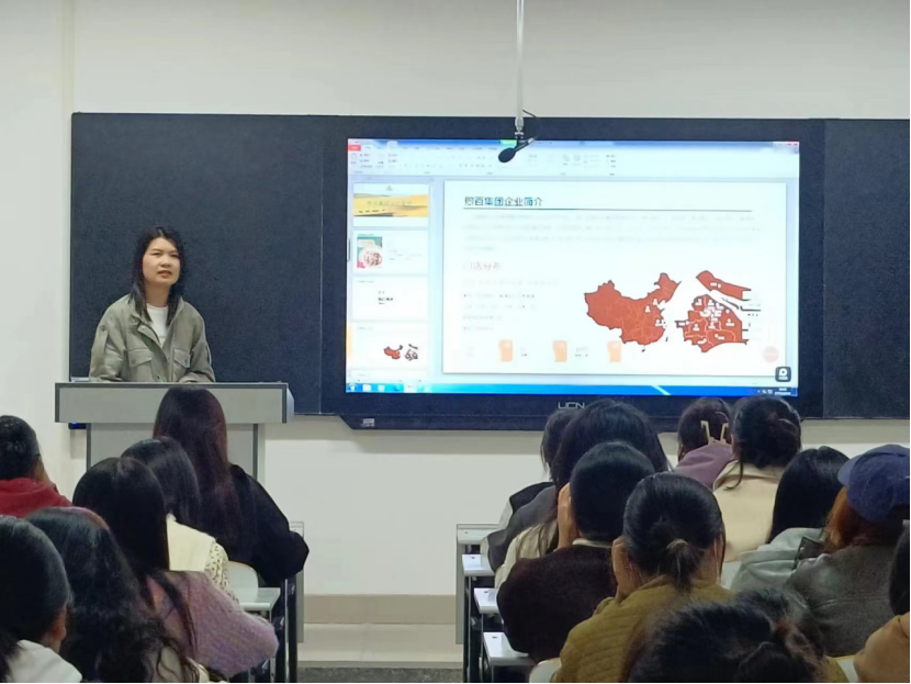 上海鑫沣餐饮管理有限公司从员工培训、岗位要求及员工福利等方面介绍公司招聘信息,接着企业负责人耐心回答现场同学们对简历投递等方面的疑问,最后负责人邀请有意向的同学进入招聘群深入交流,向我院学子抛出橄榄枝。