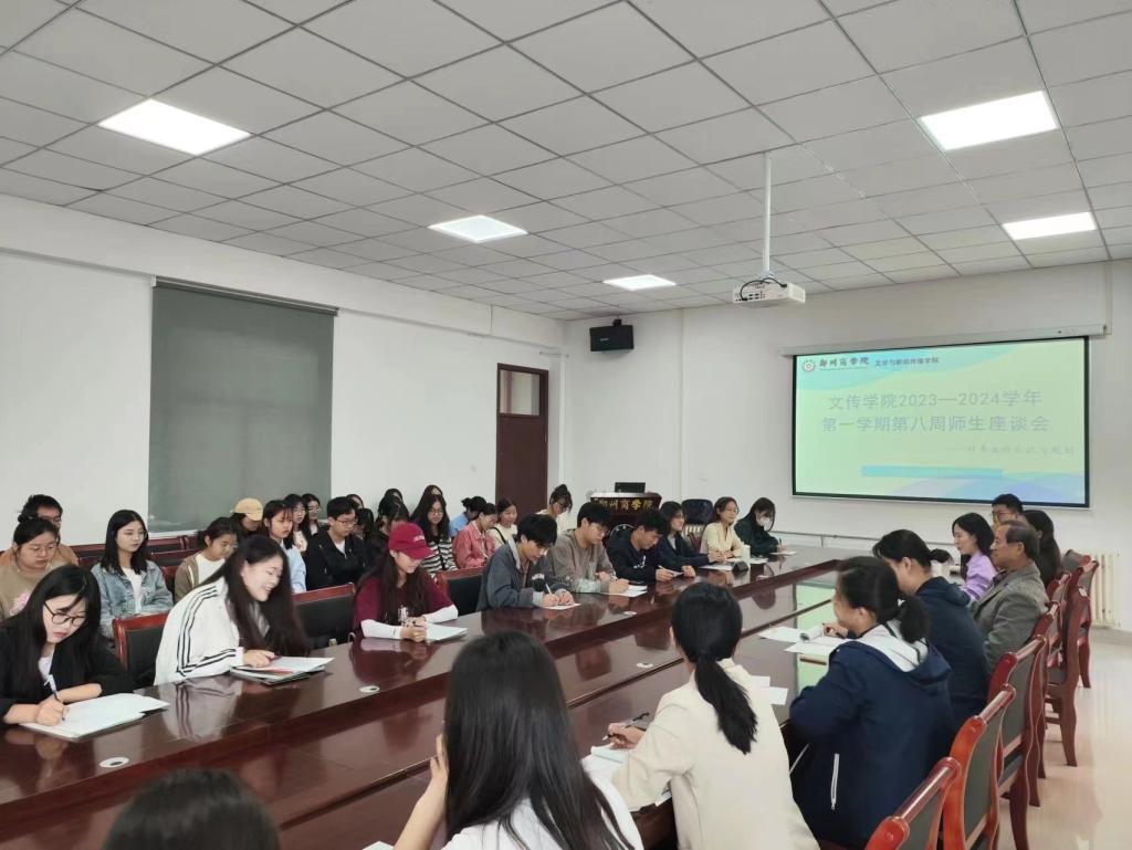 为进一步了解2023级新生的生活、学习和思想动态,帮助新生更好地融入大学生活、思考自身定位、探索成长道路。11月2日上午,我院组织开展了本学期第八周师生座谈会。副院长石璐、新传教研室全体无课教师及2023级新闻学、广告学专业学生代表参加了本次座谈。
