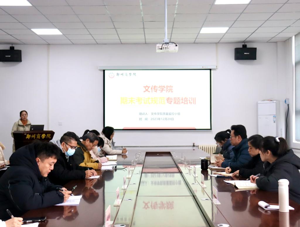 为强化教风学风协同建设,确保期末考试各项工作顺利进行, 12月28日,文传学院于自力楼216举行2023-2024学年第一学期期末考试规范专题培训会。文传学院院长王松,副院长石璐及全体教职工参加会议。
