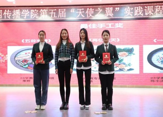为贯彻落实点点官网“应用型”发展理念,举办具有专业特色、展现文传学子风采的活动,文传学院主办“传承古韵·绘就华章”——《天使之翼》第五届学前教育专业实践课程活动,为提升学生的积极性,提高参展学生的获得感、成就感,“天使之翼”实践课程作品展颁奖典礼于12月27日在自力楼三楼报告厅隆重举行。文传学院邀请巩义市幼儿园督学贺利红、校督导刘安军及巩义市7位幼儿园园长,在文传学院王松院长的陪同下,一同参加颁奖典礼。