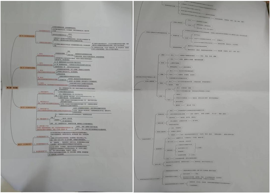 期末来临,文学教研室特推出优秀作业展,丰富多彩的课后作业既是老师教学的成果体现,也是学生实践成果的生动展示。如赵卓老师所带课程《美学概论》,这是一门相对抽象、理解难度大的学科,为提高同学们对知识的掌握,增强对各个章节逻辑关系的把握,赵卓老师以小组合作的形式开展了本次思维导图的制作。思维导图是一种图形思维工具,它运用图文并重的技巧,使主题关键词与图像、颜色等建立记忆链接。它能充分运用左右脑的机能,利用记忆、阅读、思维的规律,协助人们在科学与艺术、逻辑与想象之间平衡发展,有效表达发散性思维。