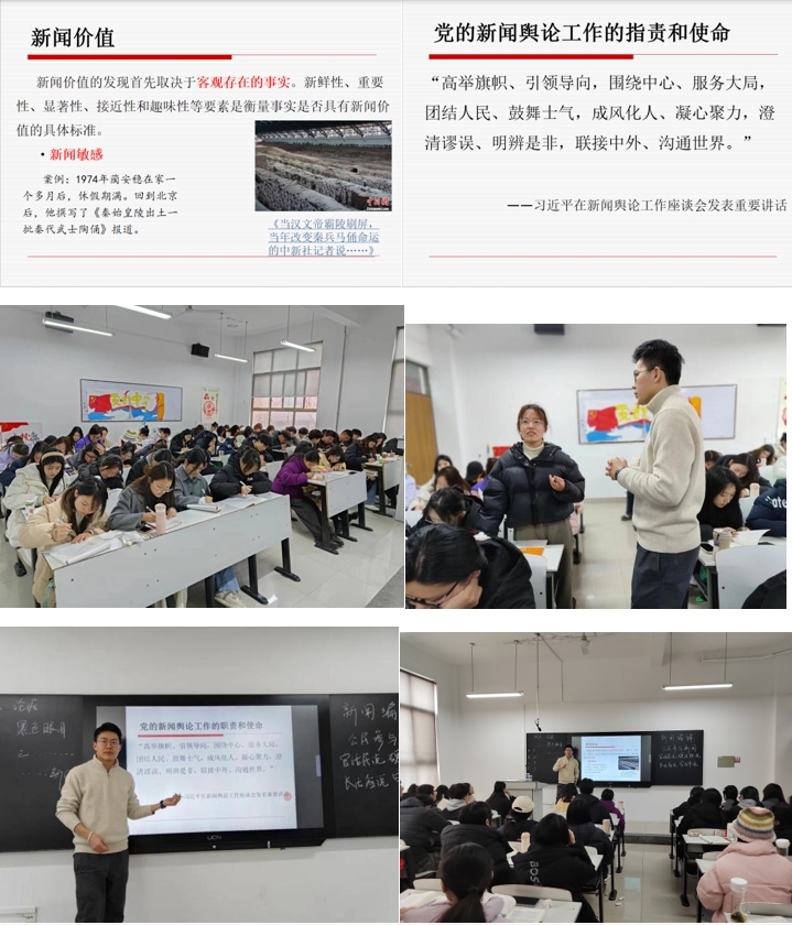 《新闻编辑学》课程通过引入真实的新闻资讯和案例,让学生在比较和反思中明确新闻编辑的责任担当。课程中,程老师会挑选一些具有代表性的新闻案例,让学生分析其编辑过程中的得失,从而使学生深刻认识到新闻编辑的责任和使命。例如程老师通过中新社资深记者蔺安稳《秦始皇陵出土一批秦代武士陶俑》的报道,来表明国家中央媒体在进行新闻稿件编辑背后的思想和方针。这种教学方法有助于培养学生具备强烈的社会责任感和职业操守,使他们能够在未来的新闻编辑工作中,始终坚守正确的政治立场,积极履行舆论引导职责。