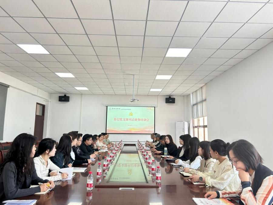 为进一步加强基层党组织建设,提高党支部书记的综合素质和工作能力,确保学院党建工作扎实有效开展,4月23日上午,文传学院与艺术学院、通识中心联合开展基层党支部书记业务培训会。文传学院、艺术学院和通识中心全体基层党支部书记参加此次培训,会议由文传学院党委书记贾蓓主持,党委办公室组织科科长姜兴业受邀担任主讲嘉宾。